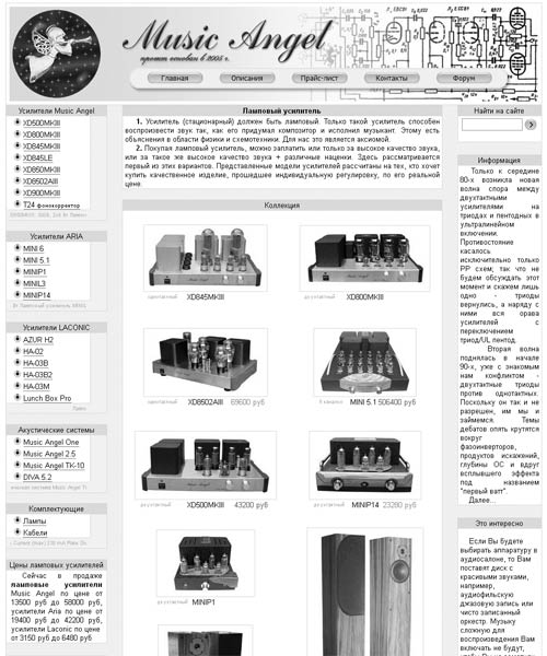 Описание сайта: Производство и дистрибуция ламповых усилителей и акустики