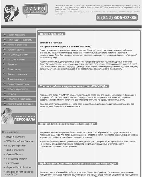 Описание сайта: Агентство по подбору персонала